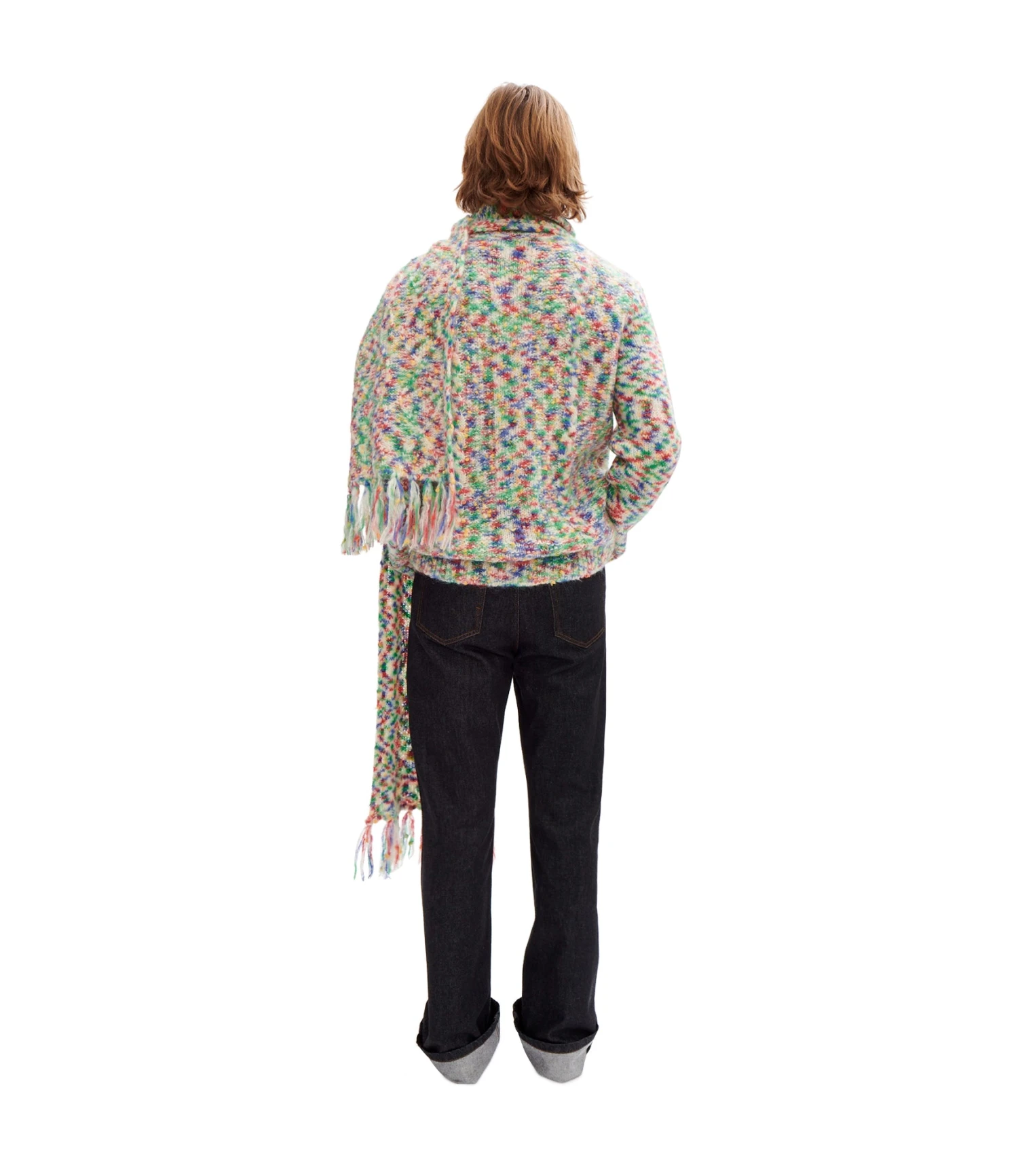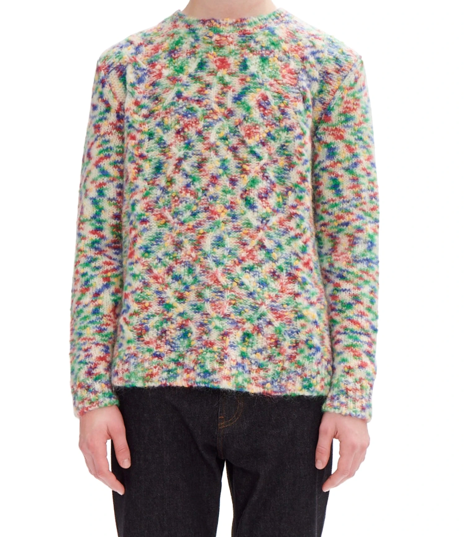 A.P.C and JW Anderson team up on a collaborative collection, drawing inspiration from the renowned performance art of German artist Joseph Beuys, entitled ‘I Like America and America Likes Me’. Knitted from a mohair-wool blend, the Connor Jumper is adorned with a vibrant multicoloured design.