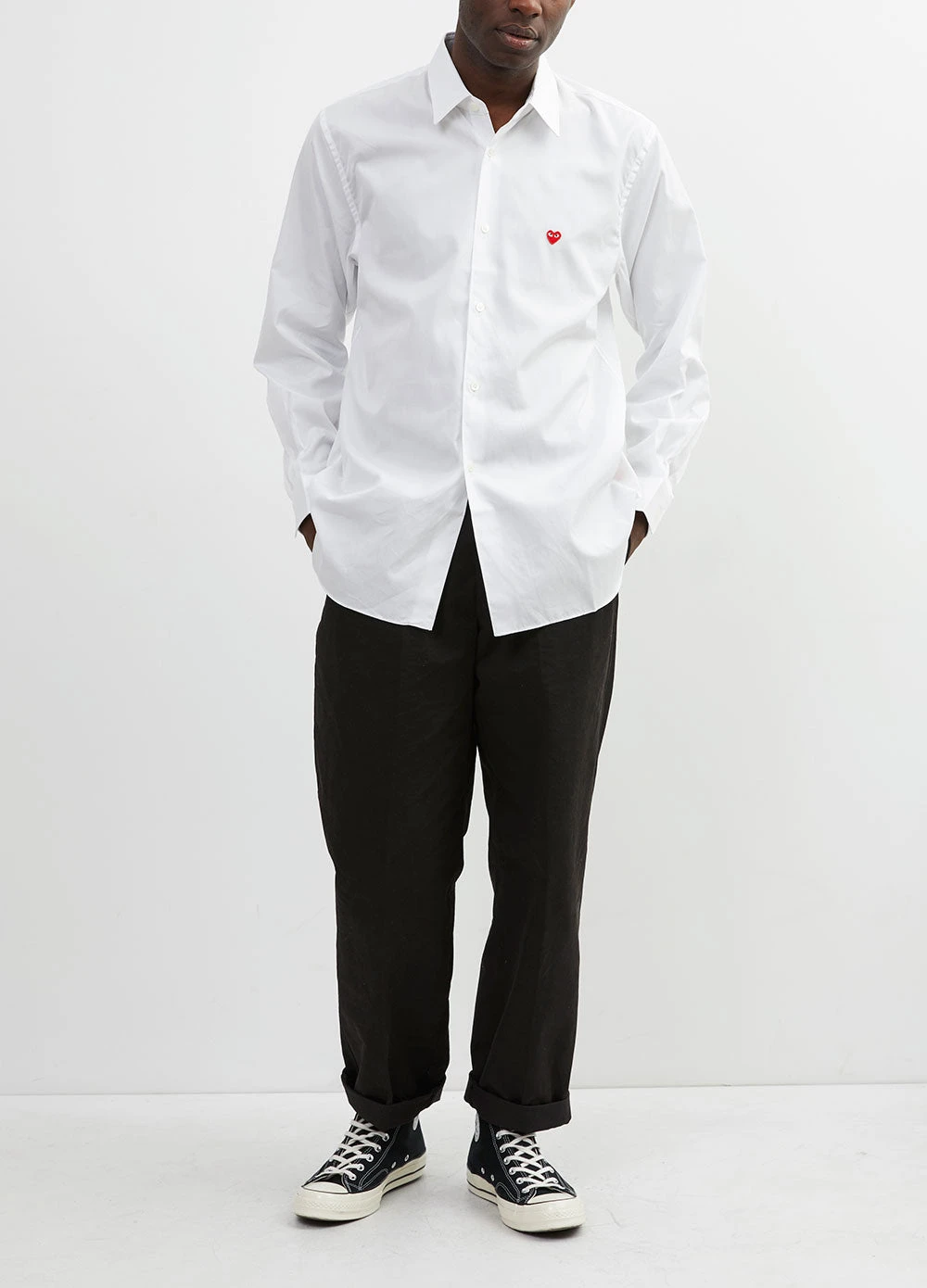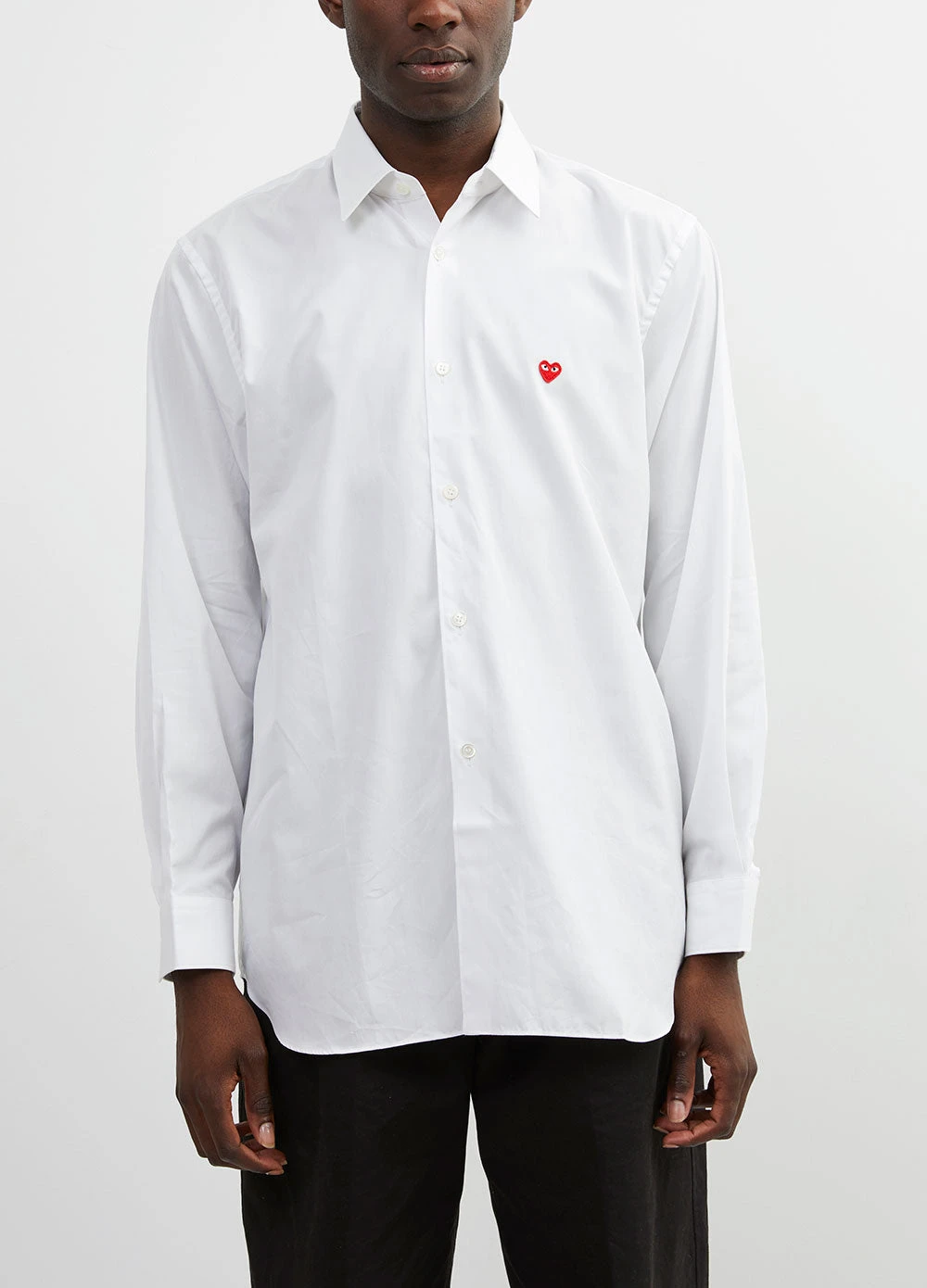 The Comme des Garcons Play B012 Red Emblem Shirt is spun from pure cotton poplin with a for a lightweight feel. The regular fit button-down is featured in a crisp white shade with the brand’s signature heart emblem to the chest for playful finish.