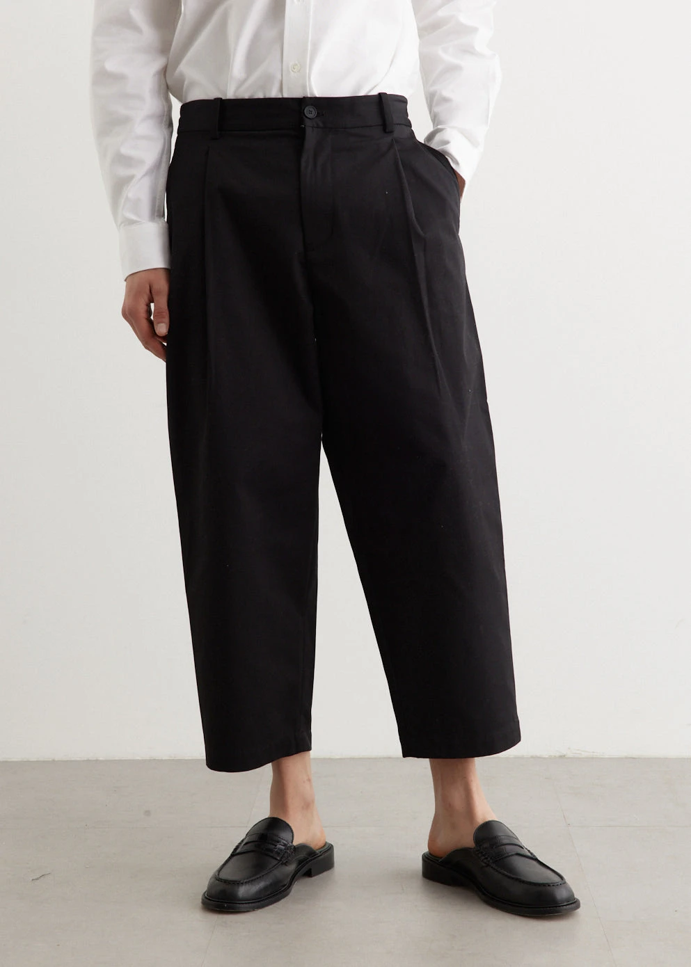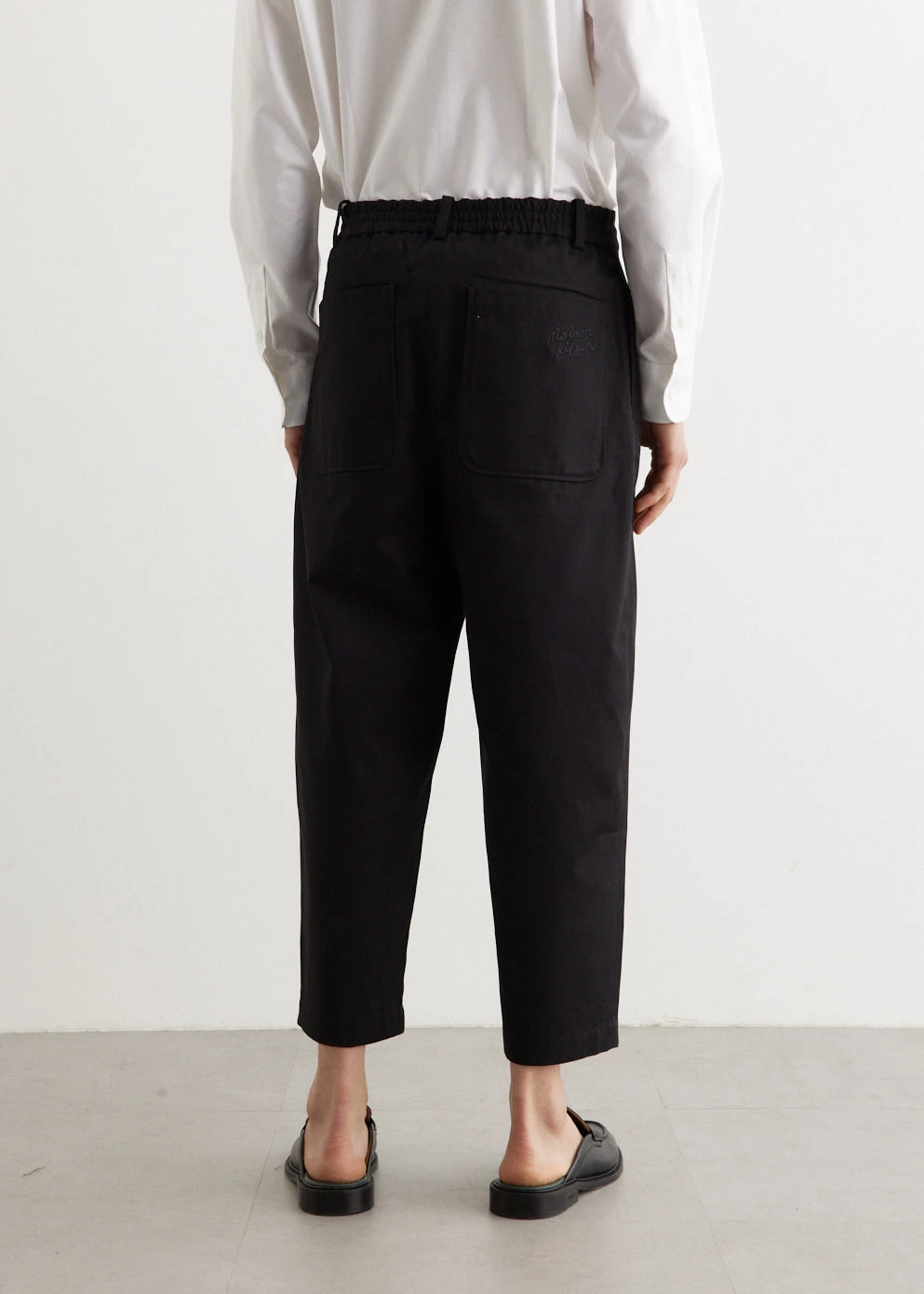 Known for a signature simplicity and subtle sense of humour, Maison Kitsune crafts high quality essentials that prove to be trans-seasonal staples in any wardrobe. Crafted from cotton gabarine, the Cropped Pleated Chino Pants are tailored to a straight cut with a single pleat. Featuring button closure with a hidden zipper, belt loops at the waistband and two patch back pockets.