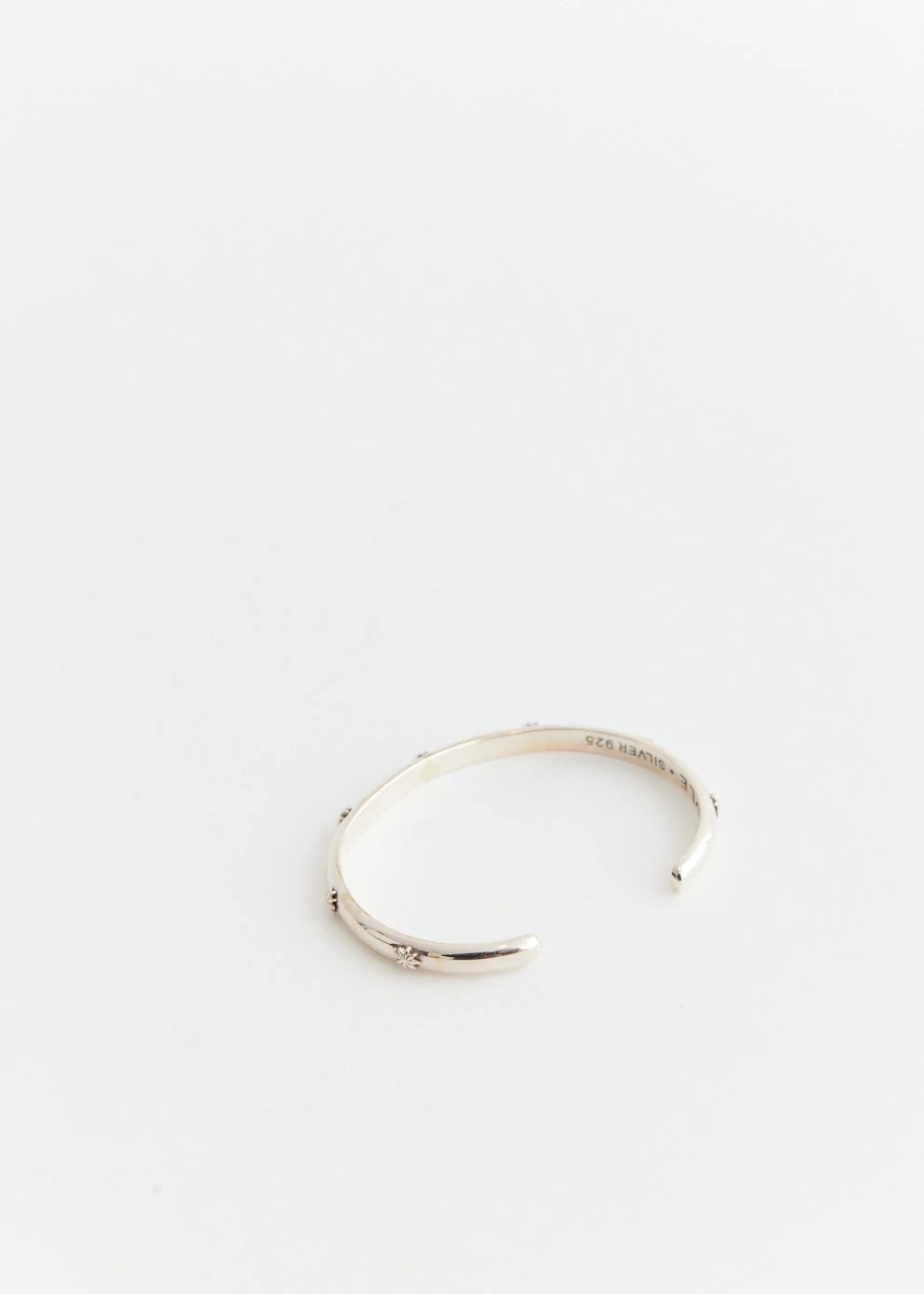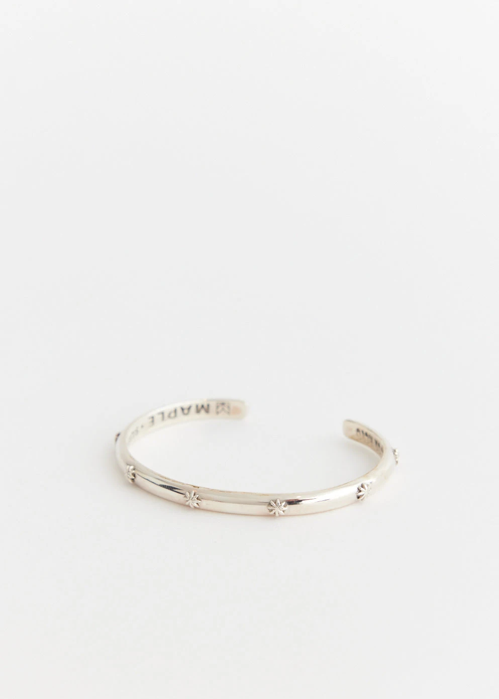 Canadian label Maple crafts its men’s jewellery from premium metals and materials. Look out for signature motifs and branded details to accent your outfits. The Hempstar Bangle has star accents and open bangle style, made of sterling silver.