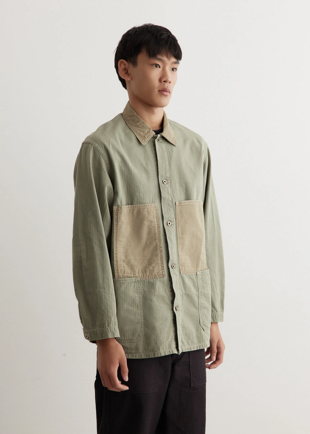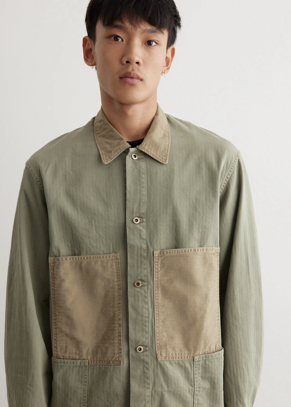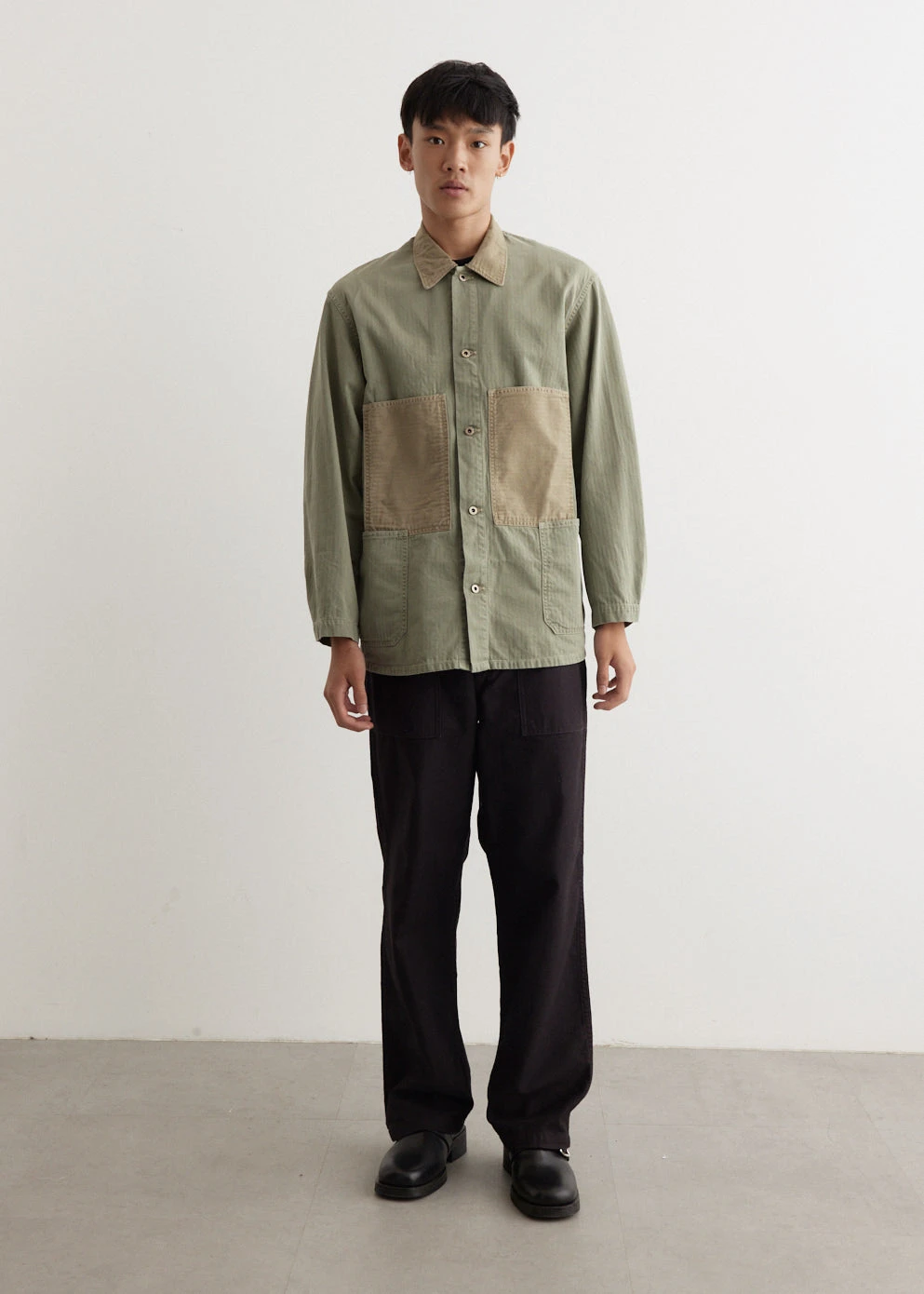 The sentiment of slowing down sets the foundations for Japanese brand orSlow. The brands raw denim, military-inspired silhouettes and a minimalist approach are visible in each collection. Based on military jackets from WW2, the Herringbone Utility Coverall Jacket is made from pure cotton and features three front patch pockets.