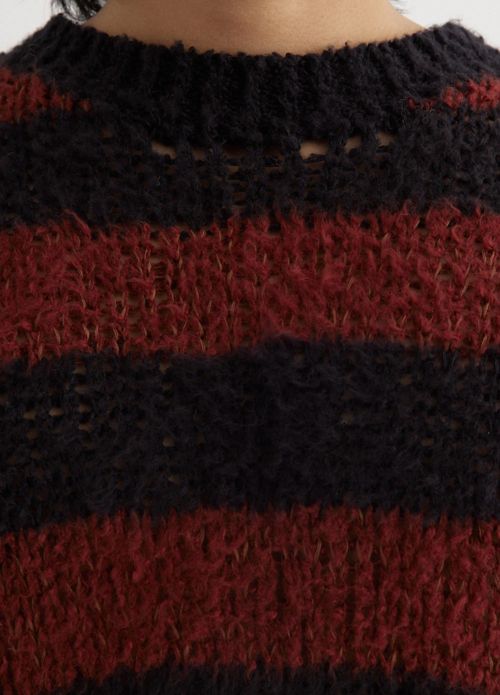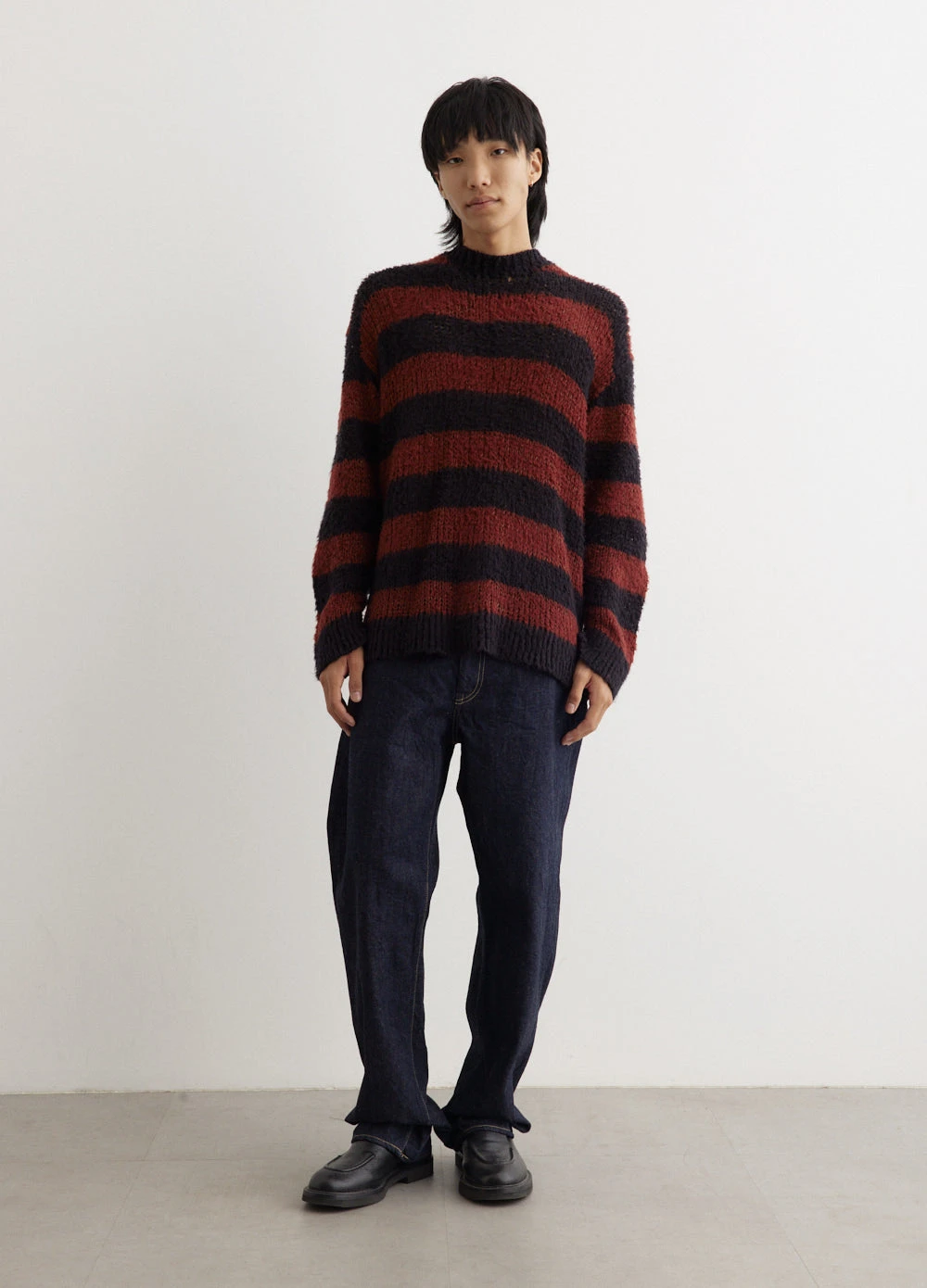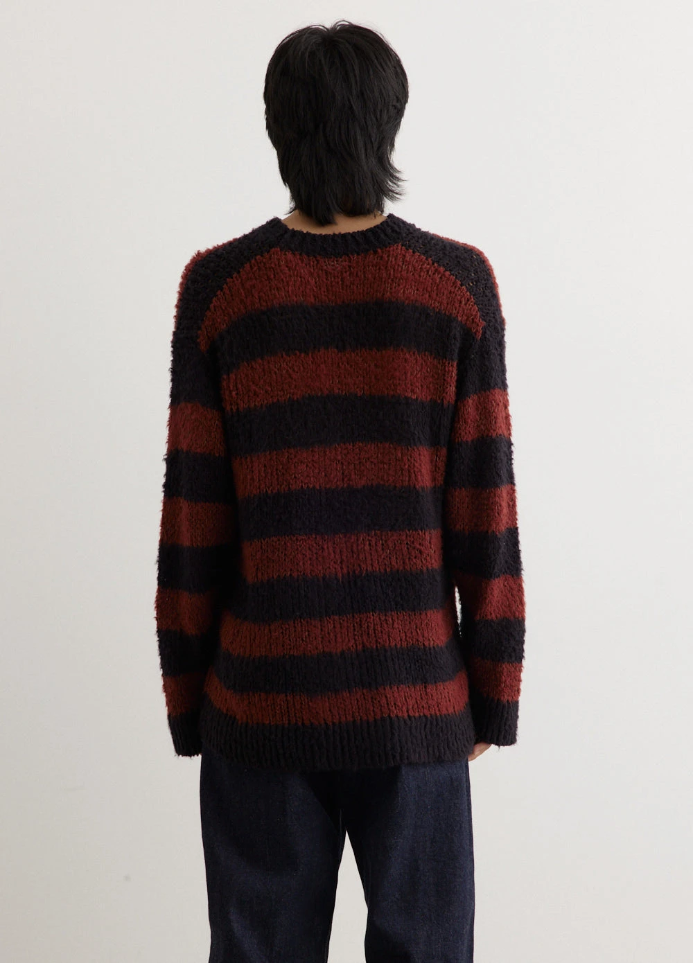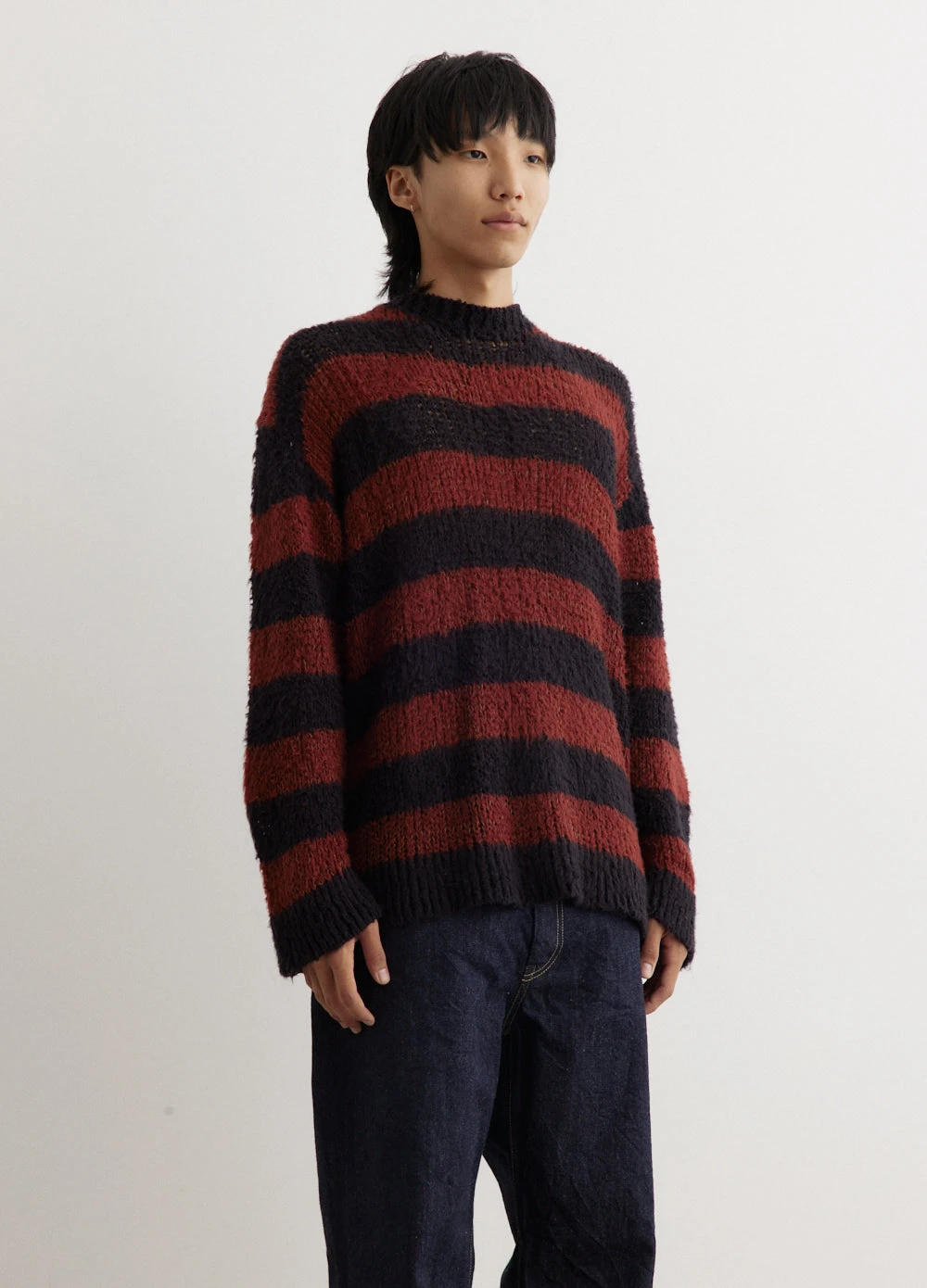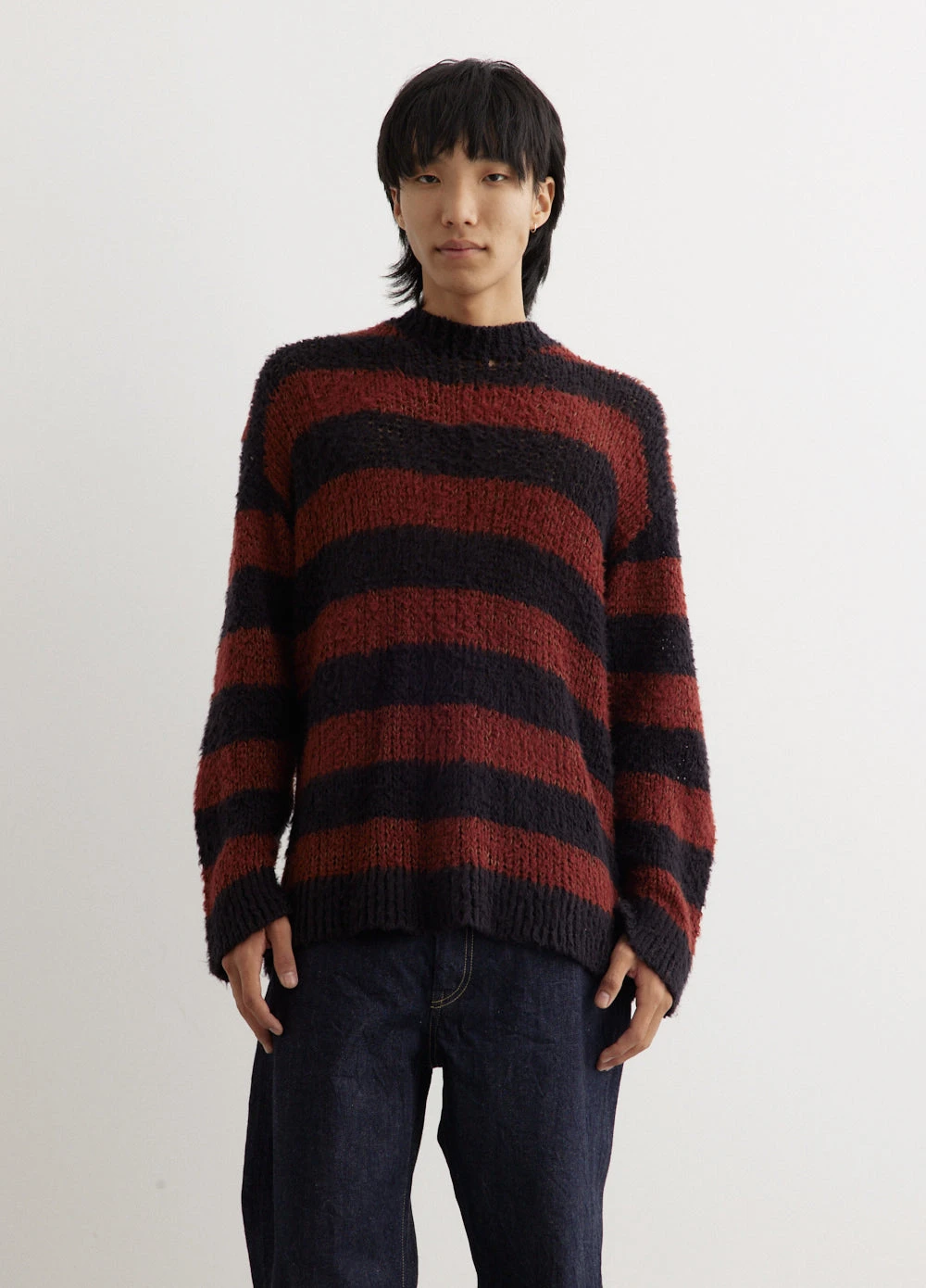Junya Watanabe launched his eponymous line in conjunction with Comme des Garcons in 1993 after working as a designer for the brand prior. Watanabe’s designs reference punk and romantic aesthetics and the method of deconstruction. Knitted from cotton, the Broad Stripe Knit is adorned with horizontal stripes throughout and is detailed with distressed accents.