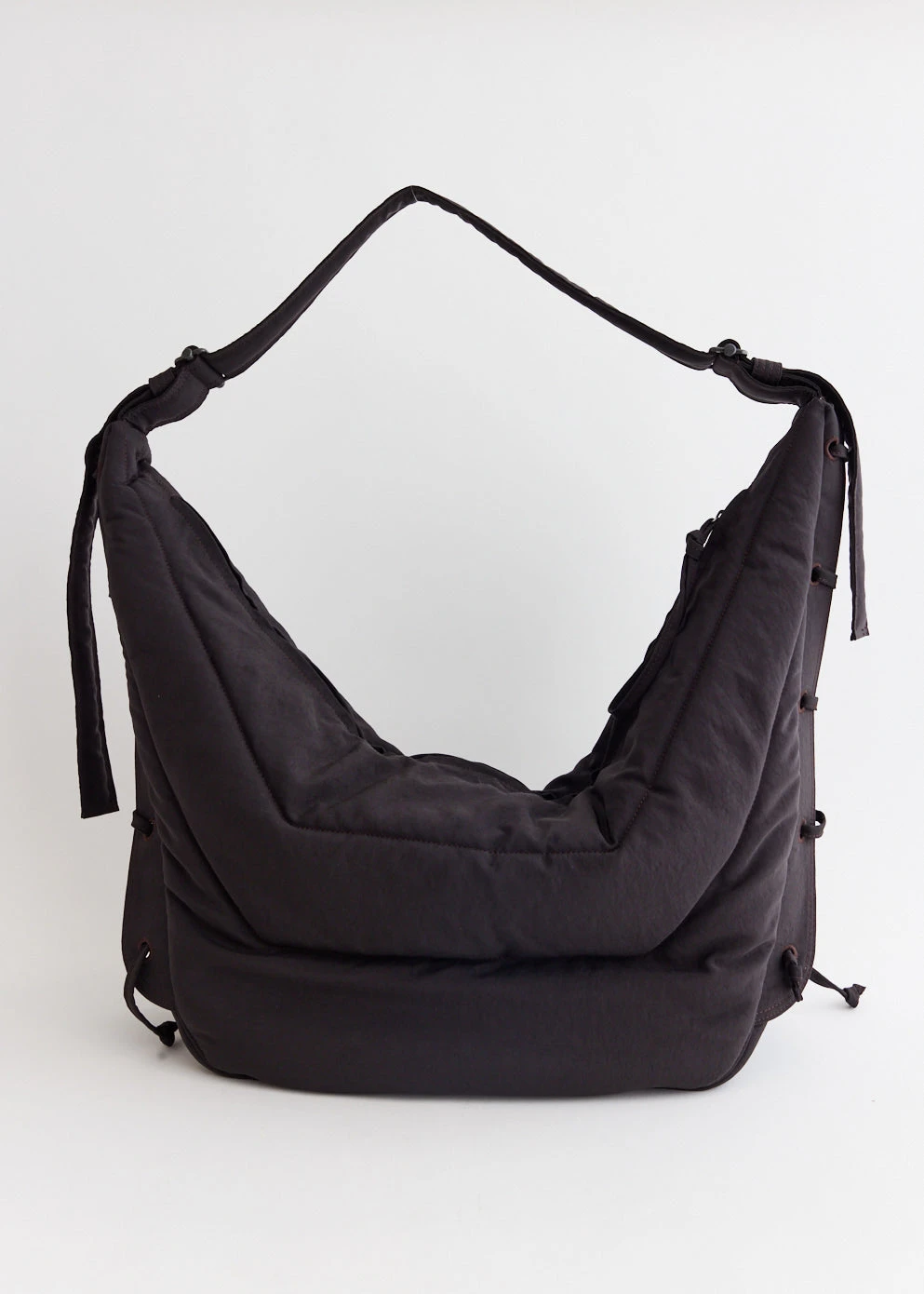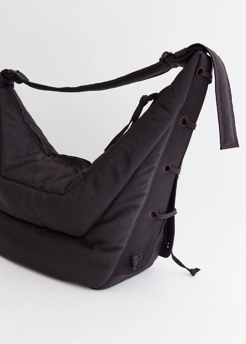 Helmed by Christopher Lemaire and Sarah-Linh Tran, the Lemaire brand offers timeless Parisian style that is sophisticated, inclusive and rich in cultural influence. The Large Soft Game Bag is a technical version of the label’s ‘Croissant’ silhouette. Crafted from nylon with a water-repellant finish, it’s designed to be worn as a crossbody or on the shoulder.Β