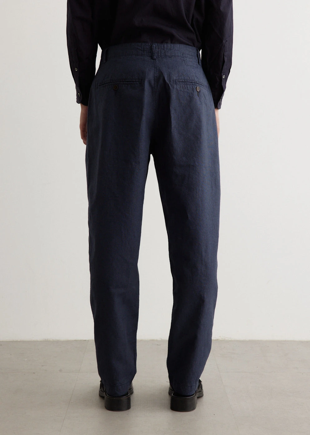 Founded in 2009 by designer David Keyte, Nottingham-based Universal Works is dedicated to crafting “real honest menswear” with high-quality fabrics and classic fits. Drawing from the founders own experiences, the brand pays homage to a variety of workwear and subcultural influences. Crafted from a linen-cotton blend with a fine check pattern, the Military Chinos boast a loose, tapered leg with a mid-rise fit.ย