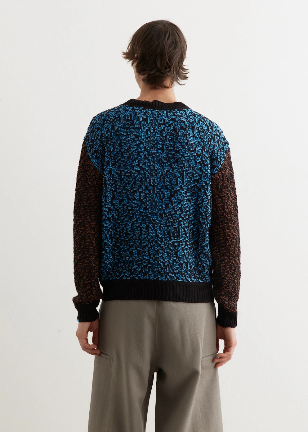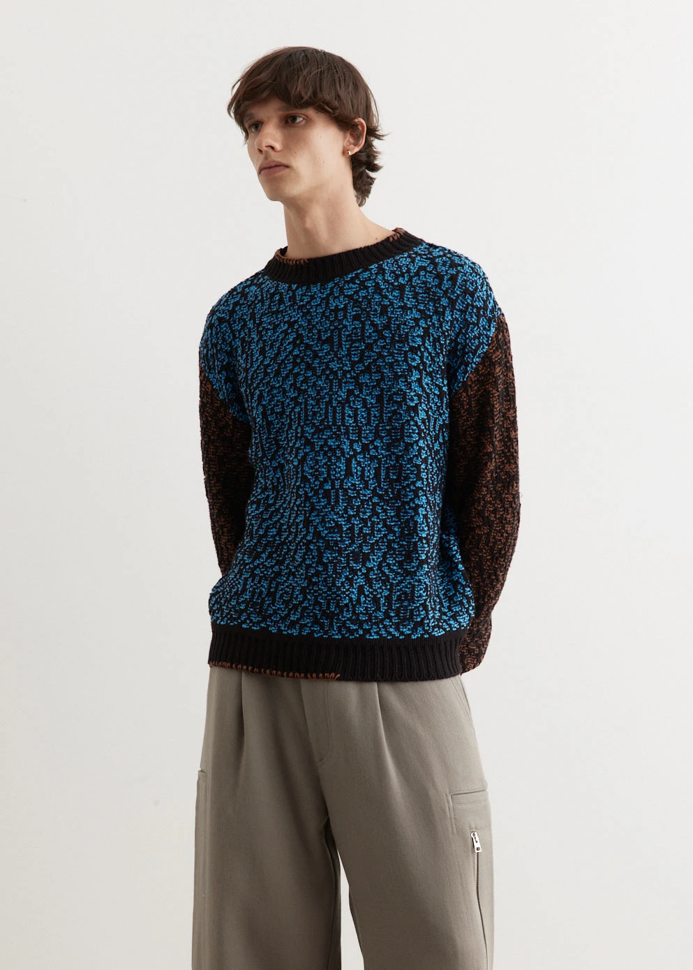 The identity of Andersson Bell was inspired by the merge of two contrasting cultures, reinterpreting Scandinavian aesthetic to create garments from a Korean perspective. Knitted with a cotton blend yarn, the Net Crew-Neck Sweater is fashioned with a colour-block pattern.