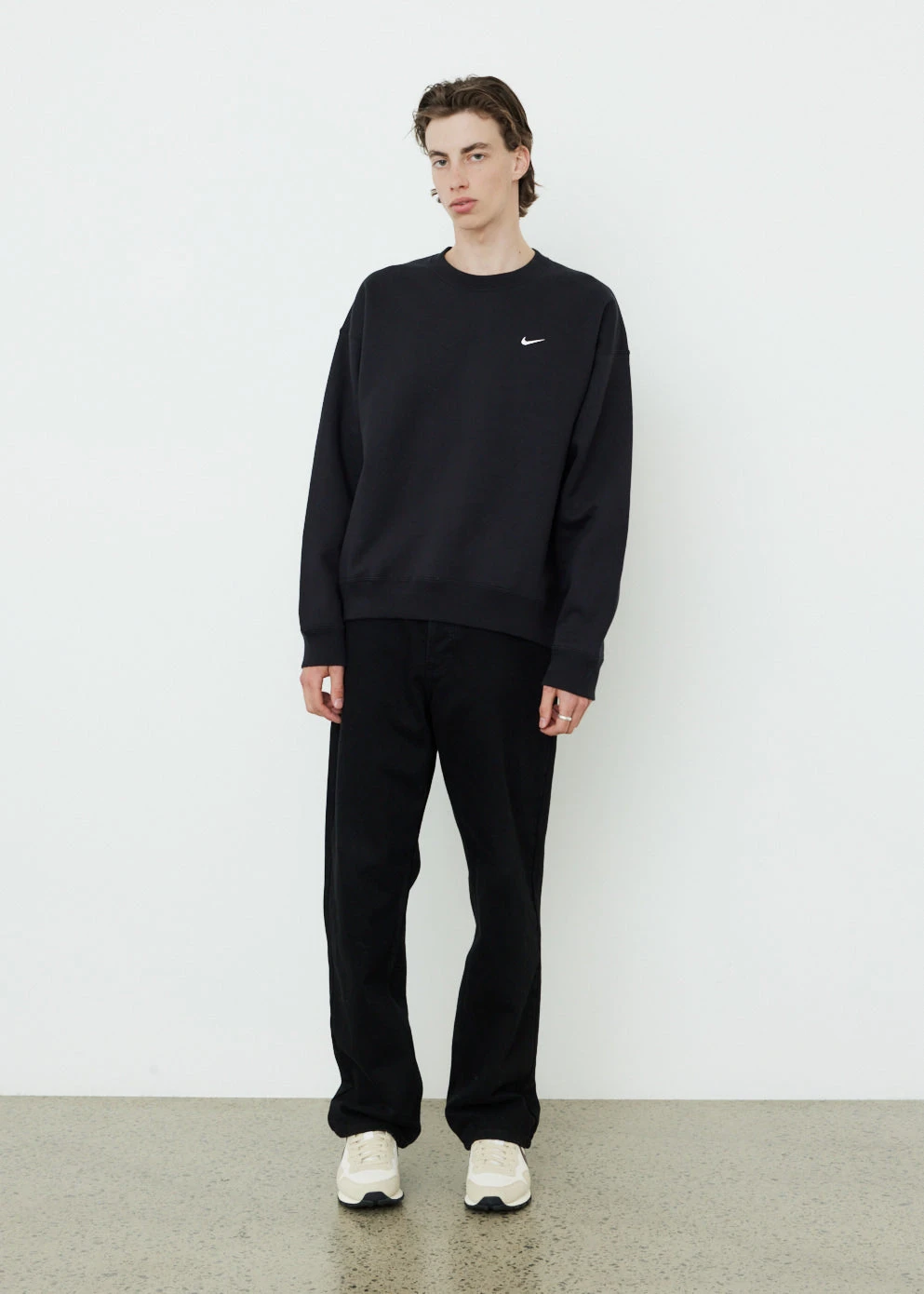 Known for its innovative designs and heritage sport aesthetic, Nike delivers all the best street and sportswear across a range of sweats, tees, pants and classic kicks. Premium fleece fabric and a slightly dropped shoulder highlight this sweatshirt. Part of the Essentials collection, this piece offers a soft feel with a loose fit for all-day wear. Style with the jeans or the NRG Solo Swoosh Fleece Pants for a complete look.