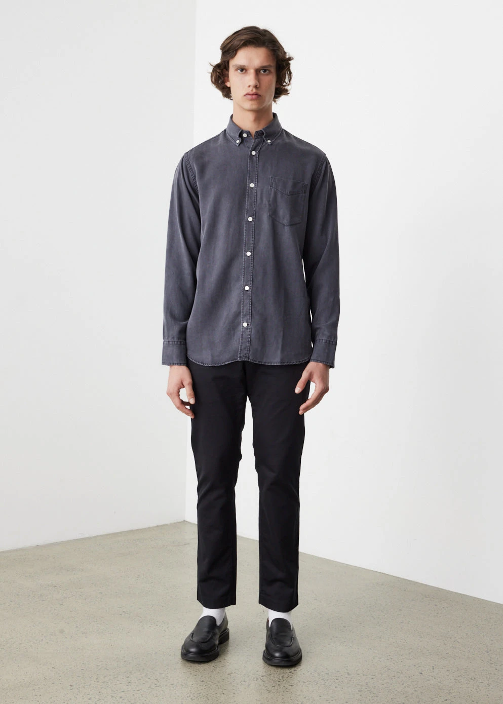 Self described as open minded and borderless, NN07 is a Danish-based label that blends minimalism in design with durability and timelessness. Crafted from lightweight lyocell, theΒ Levon Shirt is a simple yet refined design. TheΒ fabric lends a soft drape, while button down closure and chest pocket finishes the classic look.