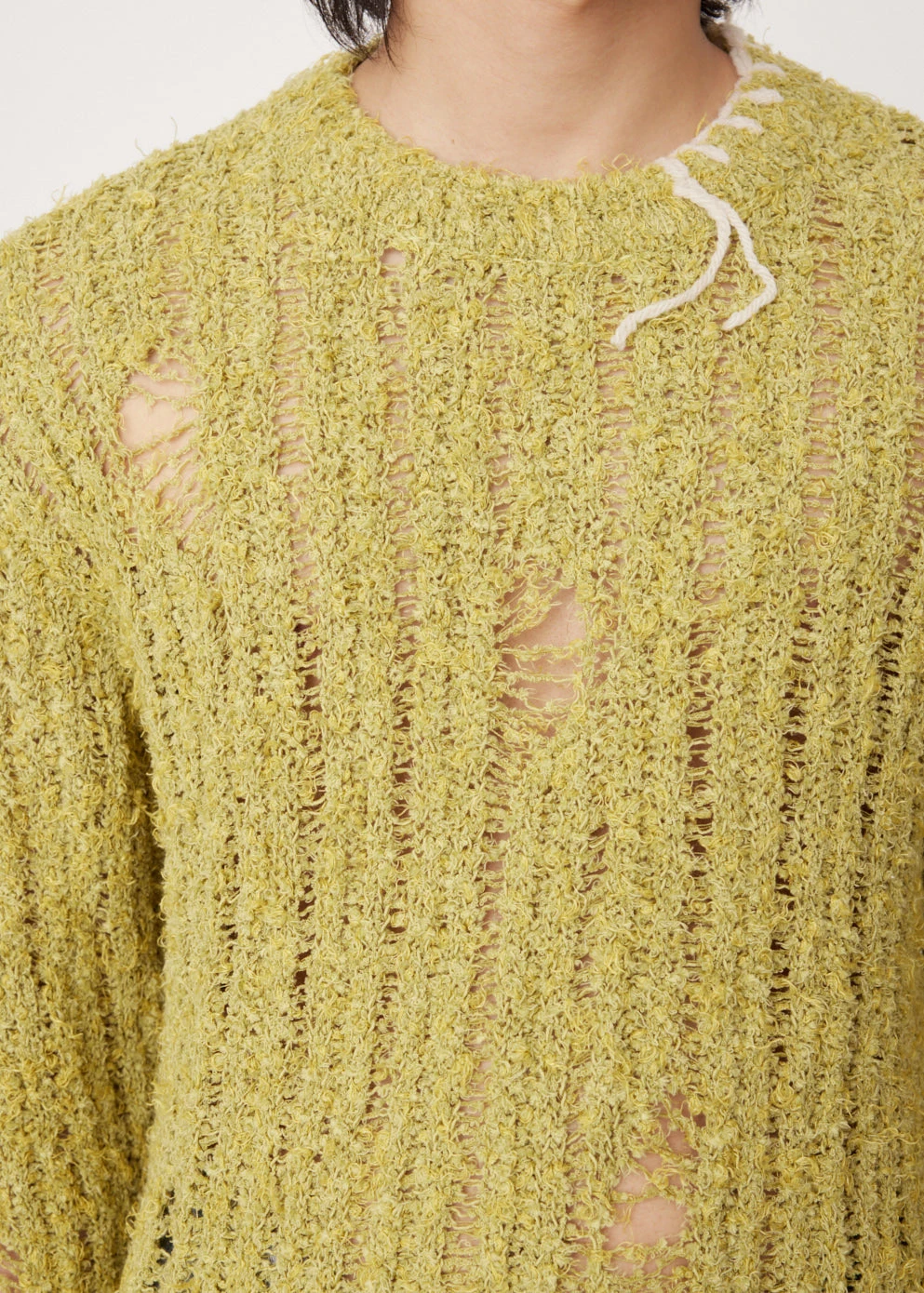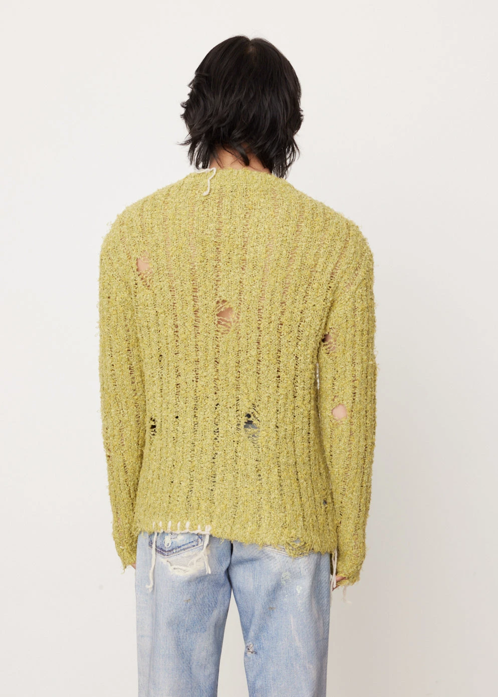 The identity of Andersson Bell was inspired by the merge of two contrasting cultures, reinterpreting Scandinavian aesthetic to create garments from a Korean perspective. Crafted from a cotton-blend fabric, theΒ Ollen Damaged Sweater is designed with distressed details and loose threading.