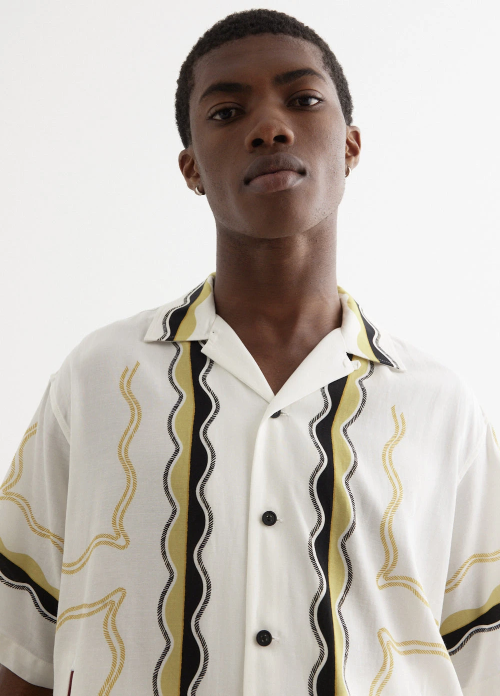 Japanese designer, Yasuko Furuta established Toga which then evolved into the Toga Virilis, a menswear line that blends contemporary western styles with traditional Japanese design. Made from a cupra-cotton blend, the Panel Print Short Sleeve Shirt is adorned with an eye-catchingย panel printing down the chest line.
