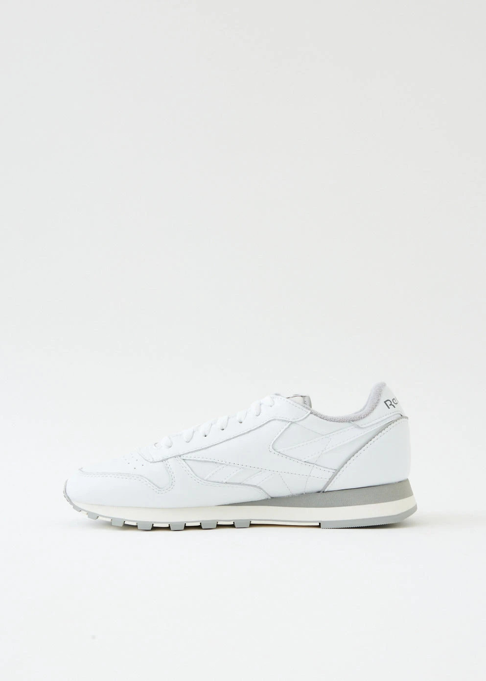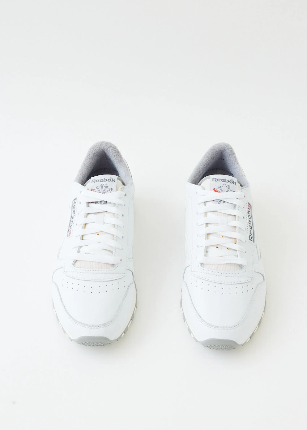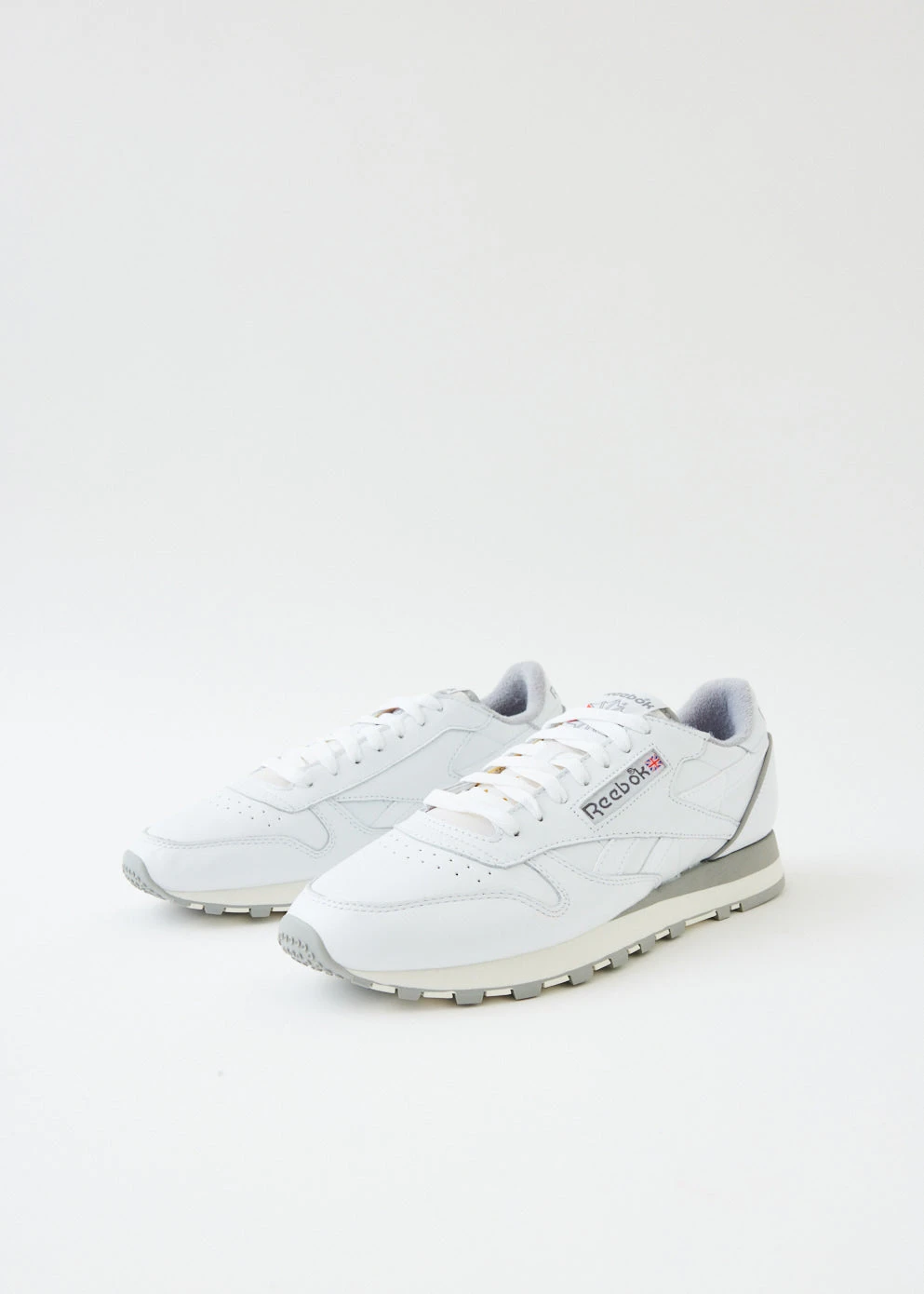 Channeling 80’s tennis court style the Classic Leather 40th Anniversary Sneakers by Reebok are a low-top style featuring tonal stripes on white leather uppers, EVA midsole, Union Jack classic branding and rubber outsole.
