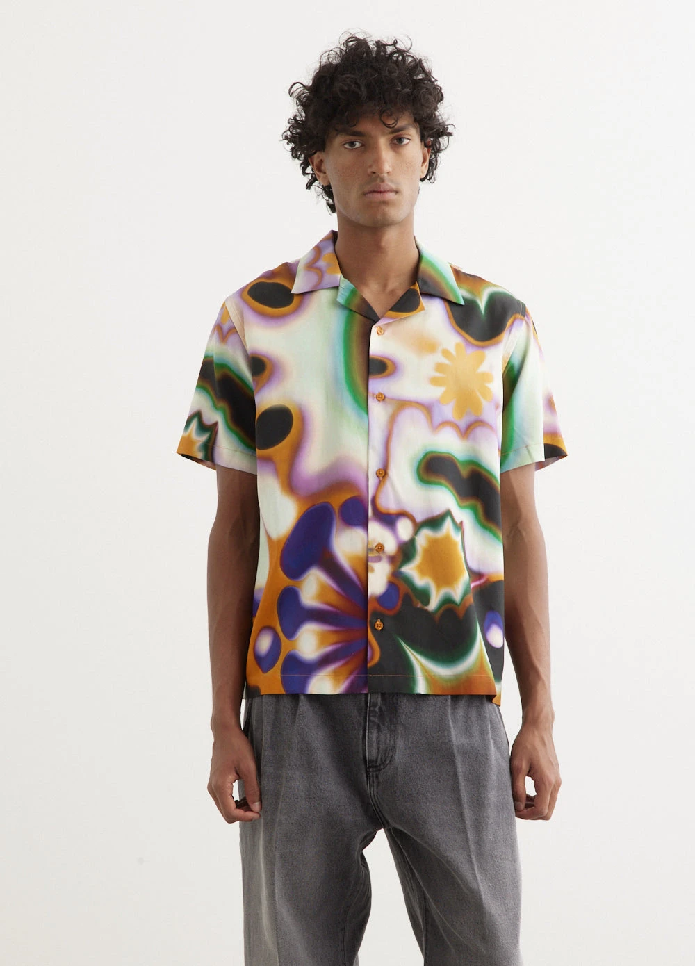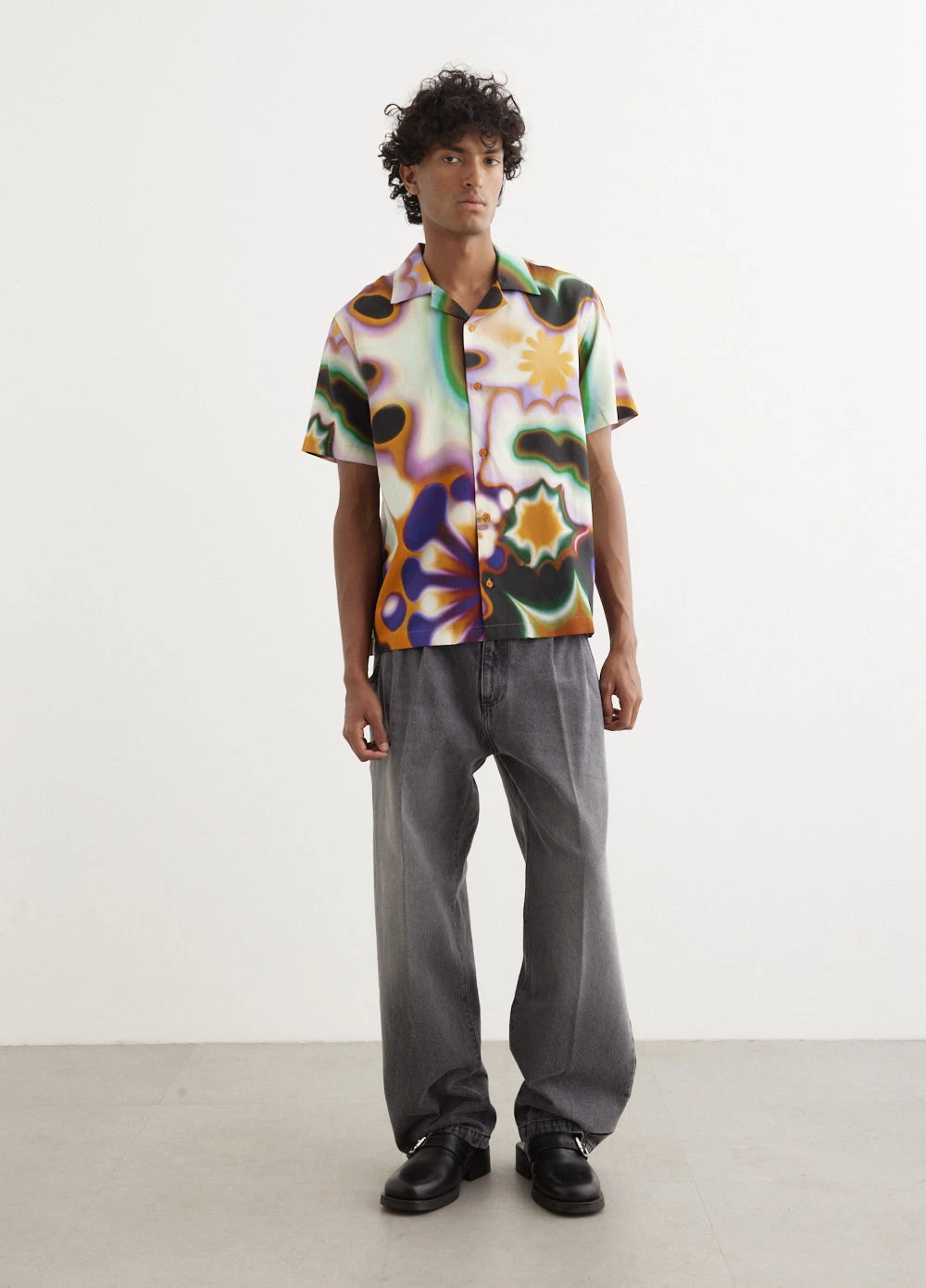 Born out of New York City in 2009, Saturdays NYC combines surf and city aesthetics, with a wide array of garments from graphic t-shirts to hoodies to tailoring. Influenced by nature and travel, their designs are understated and easy-to-wear. Made from a tencel-cotton blend, the Shawna X Canty Short Sleeve Shirt features a striking graphic print designed by renowned artist Shawna X.
