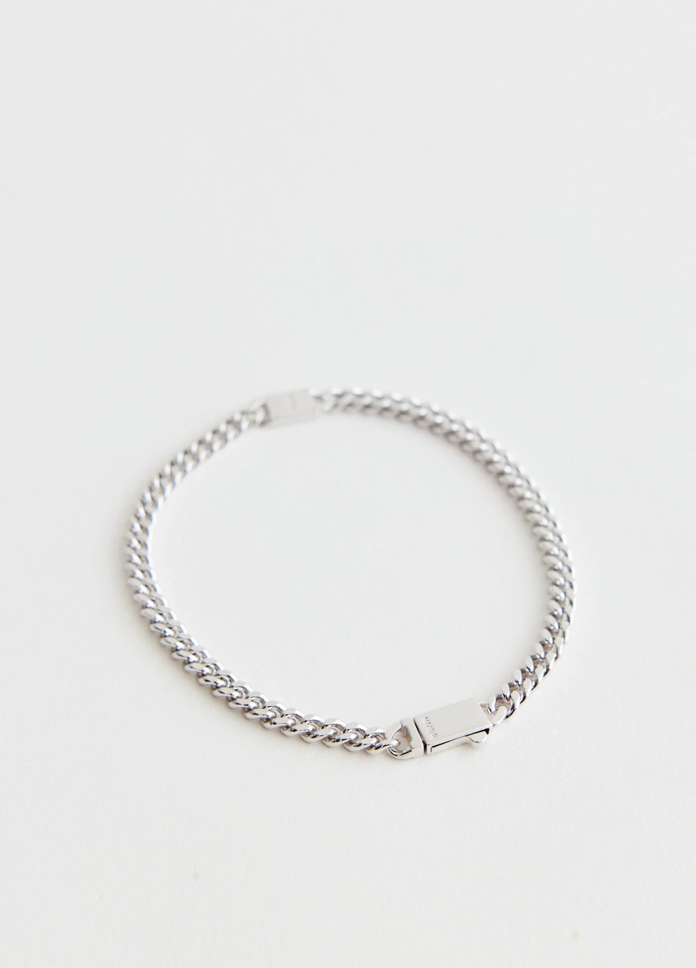 Cult Korean jewellery brand Numbering draws on the bizarre and beautiful, with the contradiction of the extraordinary and the ordinary. This Side Pendant Curb Chain Bracelet has a classic touch, with a mini-sized A13 pendant connected to the curve chain.