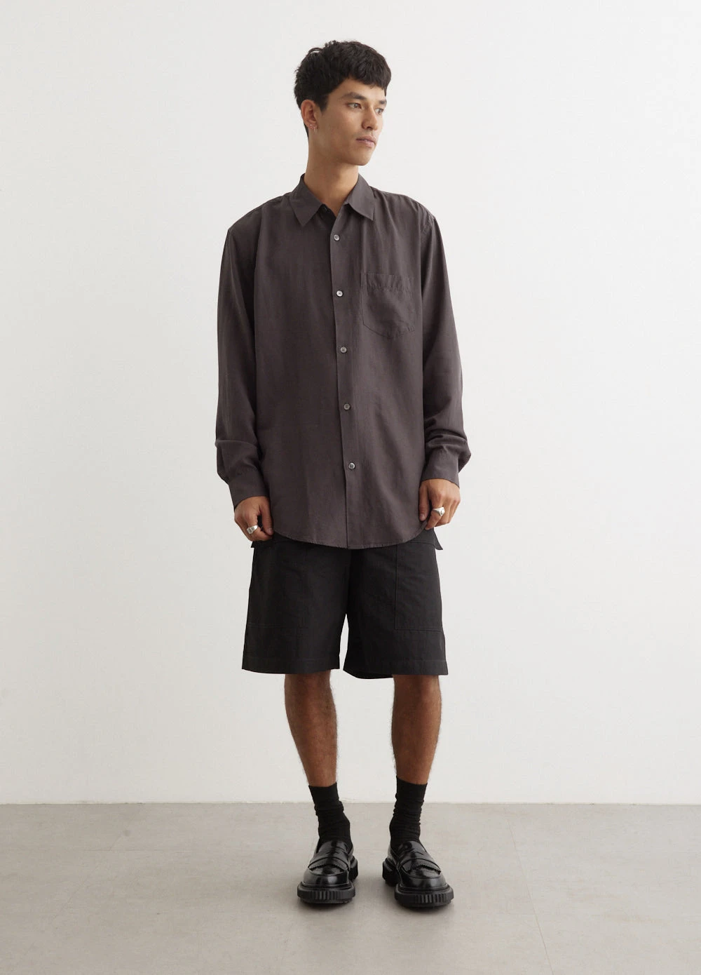 Nick Wakeman, the designer behind London-based label Studio Nicholson, is committed to perfecting everyday essentials through carefully engineered garments and functional modern designs. The Tiller Patch Pocket Shorts are designed with both style and functionality in mind. The wide leg design features conveniently placed pockets on the side, front, and back, making these shorts the perfect choice for both work and play.