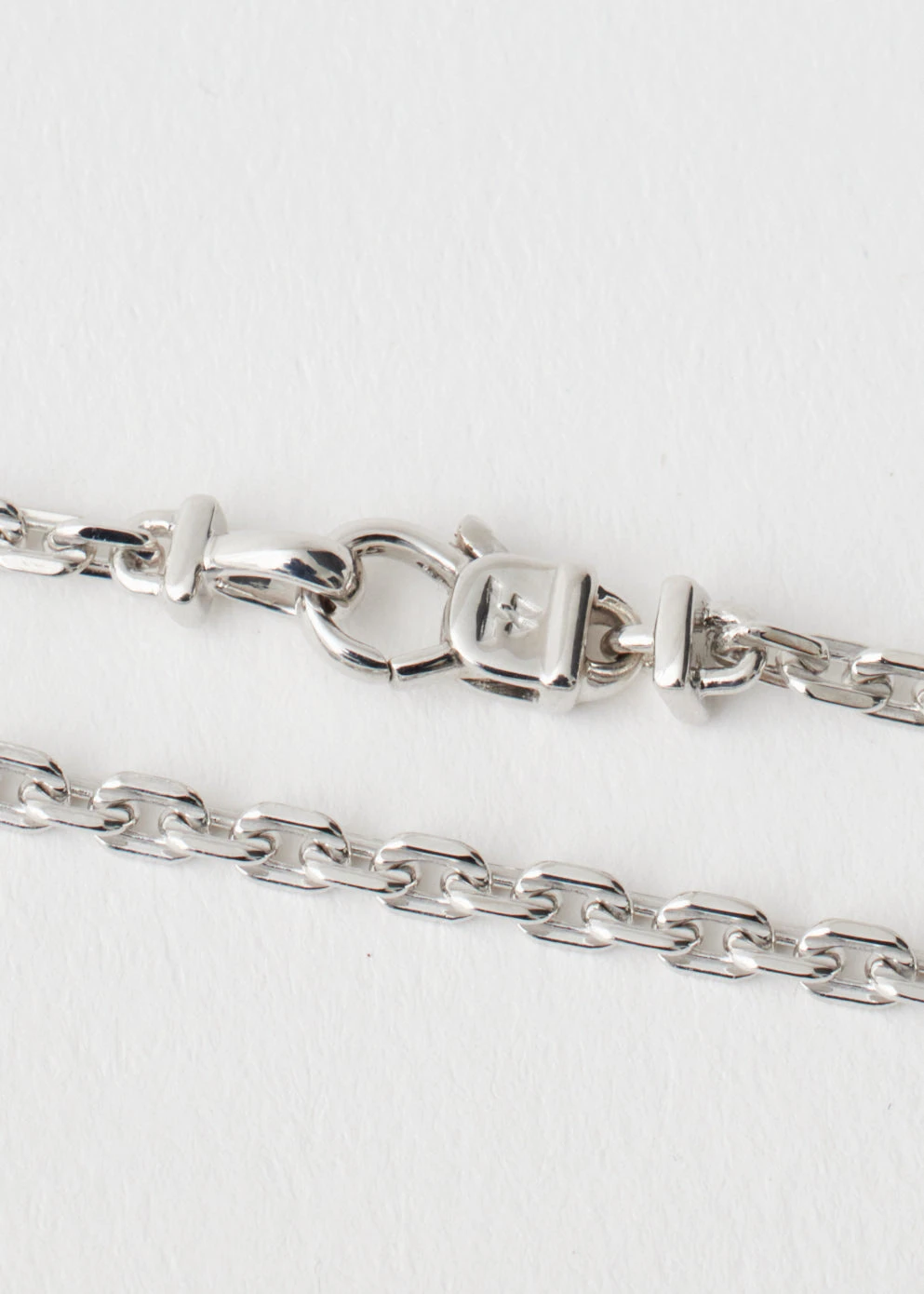 Based in Oslo, Tom Wood is a Norwegian jewellery label that embraces timeless yet functional design. This Anker Bracelet 8.3 features square cut chains linked together with rhodium plating for superior strength and tarnish prevention, finished with a custom made clasp.