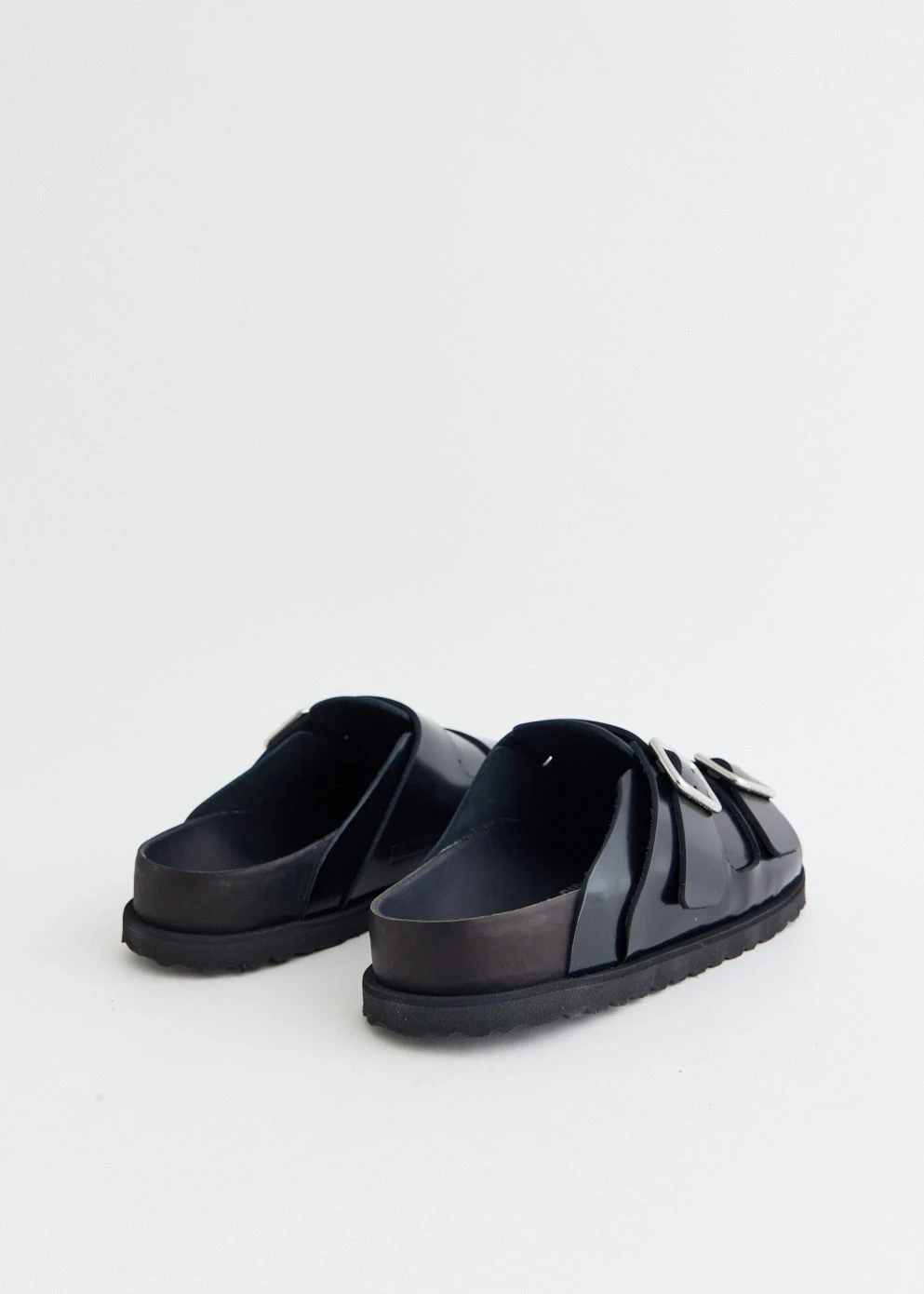 Birkenstock 1774 is the meeting point of tradition and modernity, combining the iconic brand’s signature quality and craftsmanship with collaborative partners who share an appreciation for design and production. Made with a shiny leather upper, the West Shiny Leather Regular Mules boast a closed-toe slip-on design and two adjustable straps with logo-engraved buckles. It’s finished with a durable rubber sole for ultimate comfort and support.