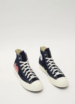 The long standing partnership between Comme des Garcons PLAY and Converseย has been a cult classic since its inception in 2009. Upholding most of the iconic Chuck Taylor 70’s design elements, this iteration features a stripped back style with the addition of aย signature PLAYย logo on the lateral quarters. As part of the Winter 21 collection, we receive two fresh colours including ‘Blue Quarts’ and ‘Steel Grey’, both sporting a black peeping heart that we have all come to know and love.